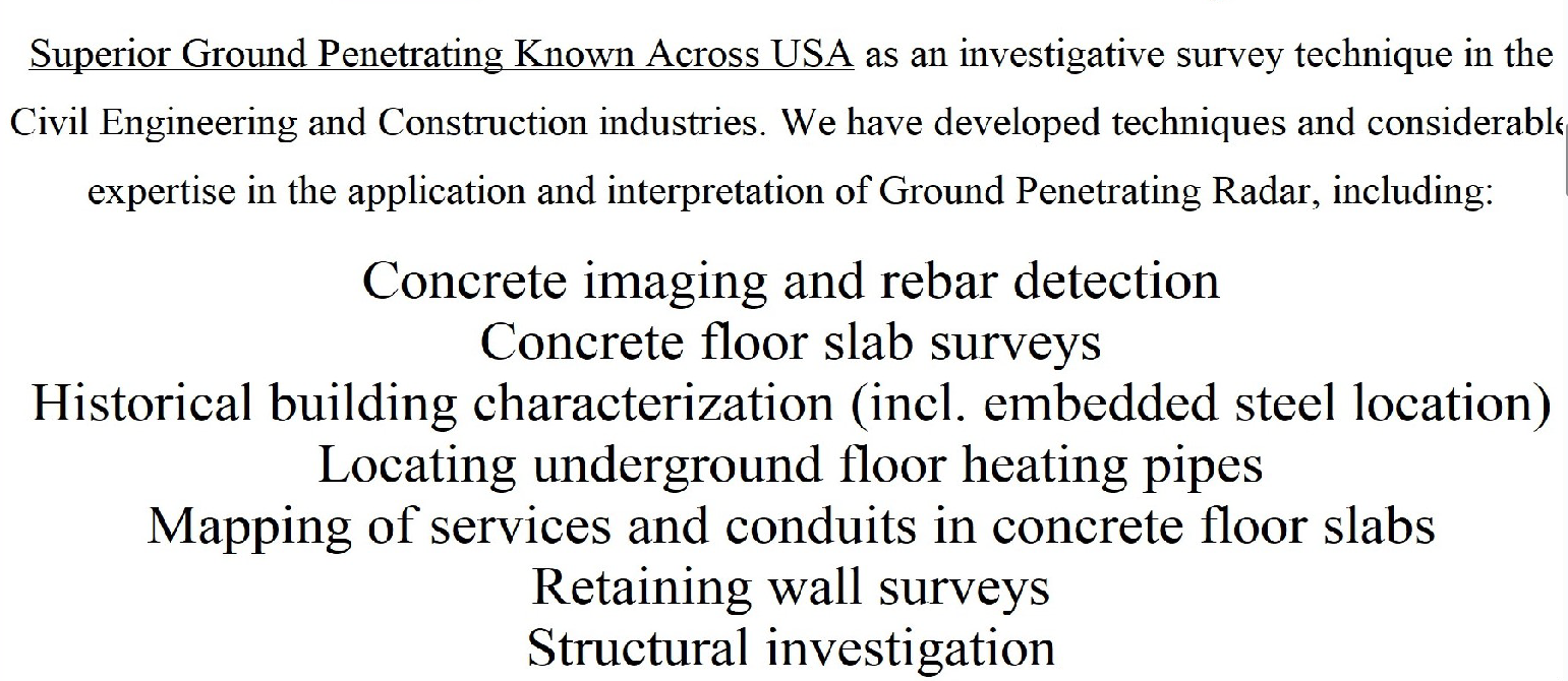 crack evaluation through hybrid image scanning - Jang - How accurate is concrete scanning? What does concrete scanning do? What is digital concrete? How deep can you scan concrete? Feedback Concrete Digital X-Ray Imaging Services Penhall Company concrete-x-ray-imaging Penhall offers digital concrete x-ray imaging services using non-destructive hard X-rays or gamma rays to image San Diego County County San Diego County County San Diego County County San Diego County County San Diego County County San Diego County County San Diego County County San Diego County County San Diego County County San Diego County County San Diego County County San Diego County County San Diego County County San Diego County County San Diego County County San Diego County County San Diego County County San Diego County County San Diego County County San Diego County County San Diego County County San Diego County County San Diego County County San Diego County County San Diego County County San Diego County County San Diego County County San Diego County County San Diego County County San Diego County County San Diego County County San Diego County County the interior of a concrete target.Enhanced Scanning (Utility Locating) Utility contractor 5+ years in business ·n "Will definitely be keeping this number in my rolodex!" Website Digital Concrete Scanning Services Engineering consultant 10+ years in business · "The best in the business, I use them for all of my Scanning." Website Clear Scan Radar Imaging Inc. No reviews · Concrete contractor 15+ years in business ·s Online estimates Website More places DIGITAL CONCRETE SCANNING SERVICES - Updated .. San Diego County County San Diego County County San Diego County County San Diego County County San Diego County County San Diego County County San Diego County County San Diego County County San Diego County County San Diego County County San Diego County County San Diego County County San Diego County County San Diego County County San Diego County County San Diego County County San Diego County County San Diego County County San Diego County County San Diego County County San Diego County County San Diego County County San Diego County County San Diego County County San Diego County County San Diego County County San Diego County County San Diego County County San B Utility Locating California | Underground Wire ... for Utility Locating Services to locate any dangerous wires and cables in CA, From San Diego to San Diego County, Los Angeles & Santa Barbara. Contact Us California Law Safe Digging Guidelines About California Call State California Serving the following California Counties: Imperial, Inyo, Los Angeles, San Diego, San Diego San Diego County, San Diego, Santa Barbara and San Diego County Underground ... Riverside Utility Locating Services riverside-utility-locating Call Now! , Riverside Utility Locating. Riverside County is the fourth-largest in California and the tenth-largest in the United States. It ... Utility Locating Riverside County utilitylocatingriversidecounty.com http://www.utilitylocatingriversidecounty.com Utility locating is performed using radio frequency methods for metallic utilities and Ground Penetrating Radar (GPR) for non-metallic utilities. Vacuum ... USA North | Call Before You Dig USA North Utility Operator · USA North · Western Regions Locating | Southern California Western ocating Our many services include public and private utility locating, ground penetrating radar (GPR), utility mapping/surveying, / field-response, ... California Private Utility Locating Services Superiorutilitylocators.com https://www.Superiorutilitylocators.com California - San Diego County - Long Beach Ventura - Riverside County - San Diego - North ... Utility Locating Service & Underground Utility Locator Utility locate https:// Best Private Utility Locators offering Underground Locating and Mapping Services in all Arizona and Southern California counties. 8. Contact Us San Diego County Utility Locating... Trusted Utility Locating Services California Underground Utility Locating and Detection ... Utility Solutions underground-loc... We are your trusted experts for utility locating services and damage prevention in the Bay Area, Central Valley and the rest of the cities in NorCal. People also search for Utility locating ca county near me Utility locating ca county map California ticket lookup Southern California Call before you dig California Utility locating ca county app Dig Alert California Open now Online estimates Top rated App Results for Los Angeles County, CA ∙ Choose area Businesses SoCal Locators Utility contractor 3+ years in business · ("They are our go-to team for private utility locating." Website Enhanced Scanning (Utility Locating) Utility contractor 5+ years in business Opens soon ebsite National Utility Locators 5.0(2) · Utility contractor · what would I have done without this company?" Website More businesses Terms People also ask How much do utility locates cost? How do I get into utility locating? How do I find out where my utility lines are? Do utility locators make good money? Feedback | Utility Locating California | Underground Wire ... ... for Utility Locating Services to locate any dangerous wires and cables in CA, From San Diego to San Diego County, Los Angeles & Santa Barbara. Contact Us California Law About Safe Digging Guidelines Utility Locating Company in Los Angeles Utility locate https:// los-angeles-private-utility... Discover how we can assist you in finding underground lines and facilities at a fraction of the cost. Visit Utility locate today! Los Angeles Utility Locating, Concrete Scanning, Sewer ... GPR location los-angeles GPR provides private utility locating, leak detection, 3D laser scanning, CCTV video pipe inspection, and concrete scanning throughout Los Angeles and the ... Best Utility Locating Service & Underground Utility Locator Utility locate https:// Best Private Utility Locators offering Underg
